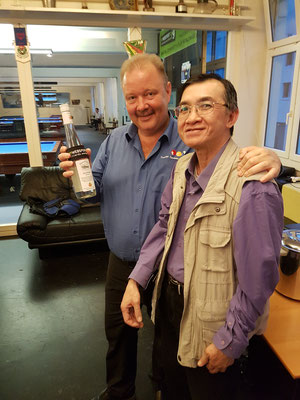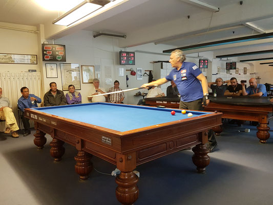 Danach ging er zu den Trickstössen über, u.a. spielte er unglaubliche Zugbälle und war die ganze Zeit ein sehr guter Unterhalter.