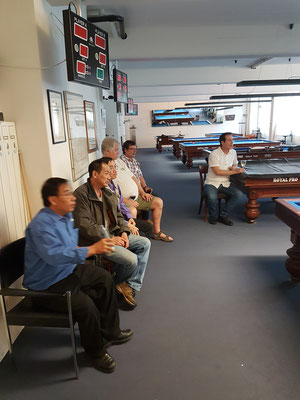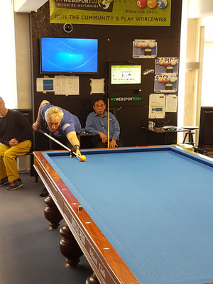 Während der Feier liefen per Kozoom aufgezeichnete Videos von Spielen mit BCZ Beteiligung. Später konnten wir live in die Viertelfinal-Begegnungen der laufenden WM betrachten. Nach dem Essen spielten wir einfach selbst etwas Billard.
