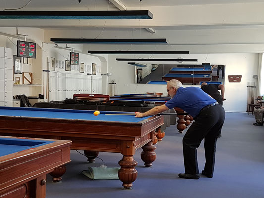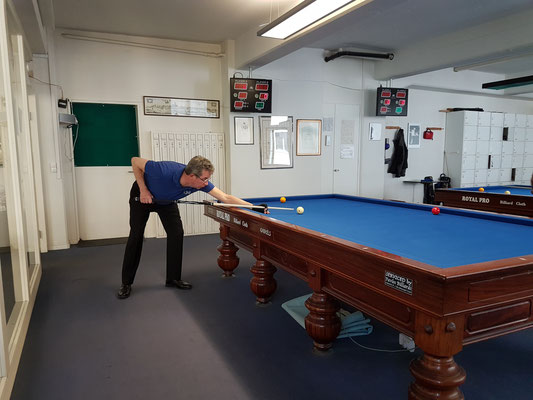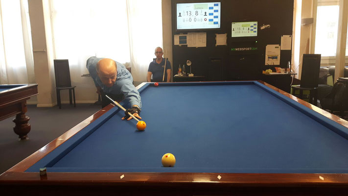 20:30-21:30 Dreiband High Run, Einsatz 5 CHF: Aus einer vorgegebenen Position kann man in 3 Versuchen probieren, daraus die höchste Tagesserie erzielen. Jeder Mitspieler kann sich dabei von Marco coachen lassen. Der Gewinner erhält ein Training von ihm.