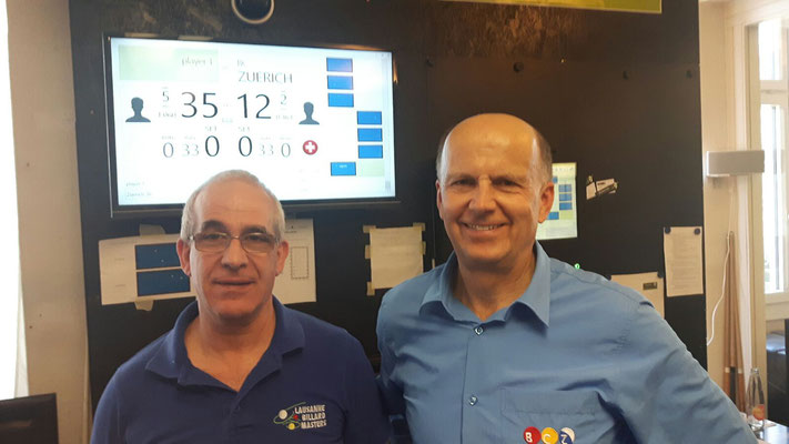 In wenigen Tagen treffen sich in unserem Clublokal in Zürich die erste Mannschaft von Lausanne (ALB 1, mit dem Dreiband-Profi Marco Zanetti) mit Zürichs 1. und 2. Mannschaft. Es geht um die Schweizer Mannschafts-Meisterschaft im Dreiband 2016/17. Zur Erinnerung: Vor einem Jahr gewann BCZ1 den Titel ebenfalls gegen Lausanne mit einem hauchdünnen Vorsprung von lediglich zwei Punkten.