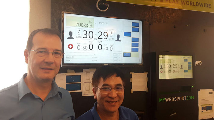 Anschliessend zeigte Jimmy Riml den Anwesenden die neuen Features vom myWebSport System. U.a. wird nun die Geschwindigkeit der Bälle gemessen. Es kam zu einem Wettbewerb und Behzat und Andreas schafften als Beste beide einen Stoss von 41 km/h. Im darauffolgenden Stechen bestätigte Behzat dieses Tempo während Andreas etwas langsamer war. Behzat gewinnt damit ein Ferntraining mit Andreas Efler.